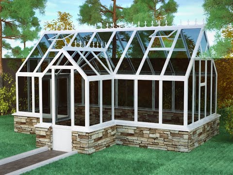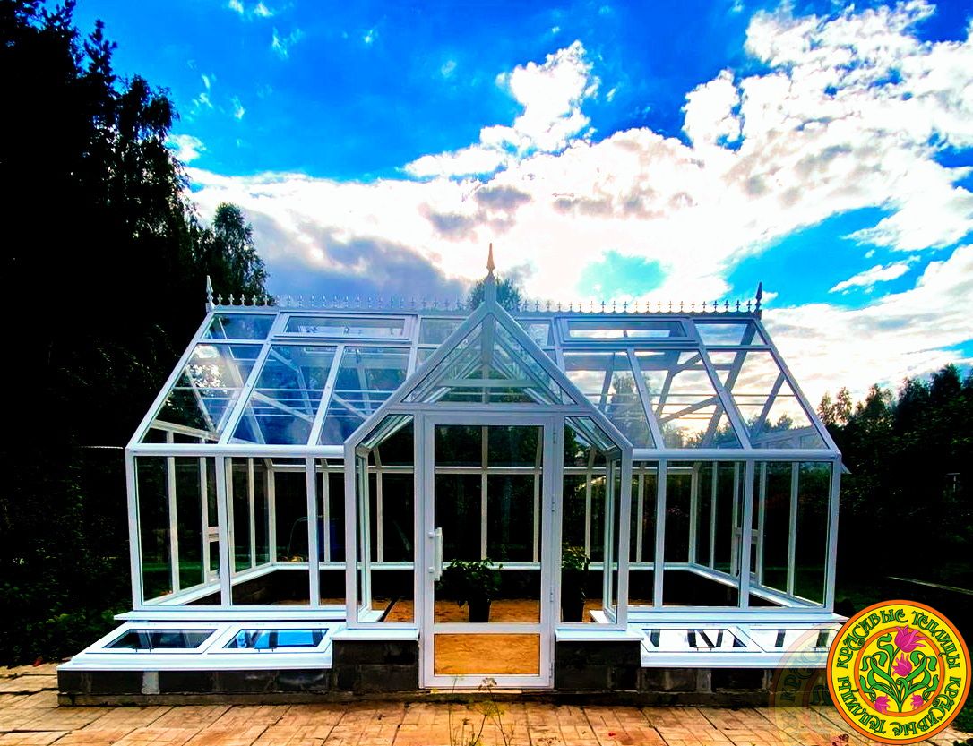 Базовая комплектация теплицы в английском стиле с холлом из стекала и алюминия ЕЛИЗАВЕТА 6000 х 3000 мм