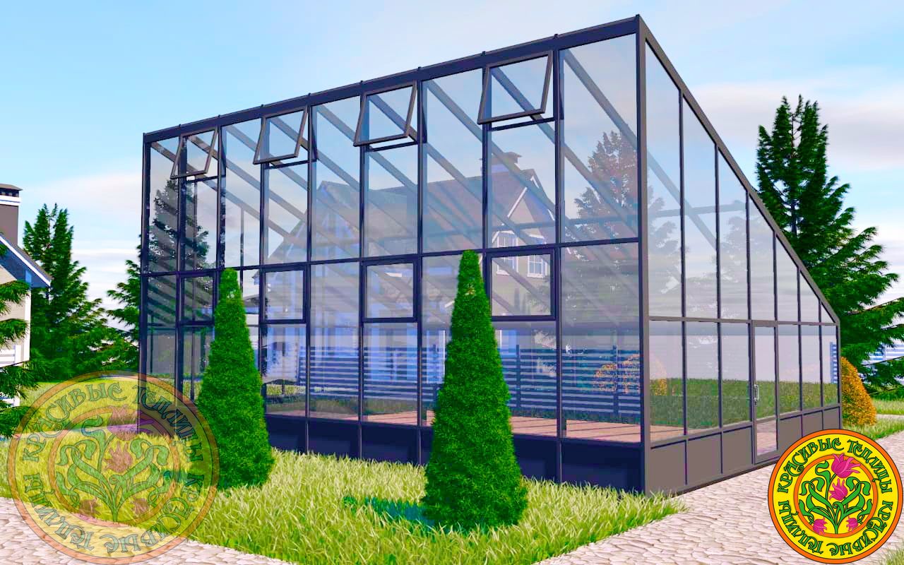 Теплицы имеют безупречный внешний вид созданный в лучших европейских архитектурных традициях. Алюминиевый каркас имеет термовставку исключающую промерзание профиля. Стеклопакет 32мм гарантирует минимальные потери тепла.
