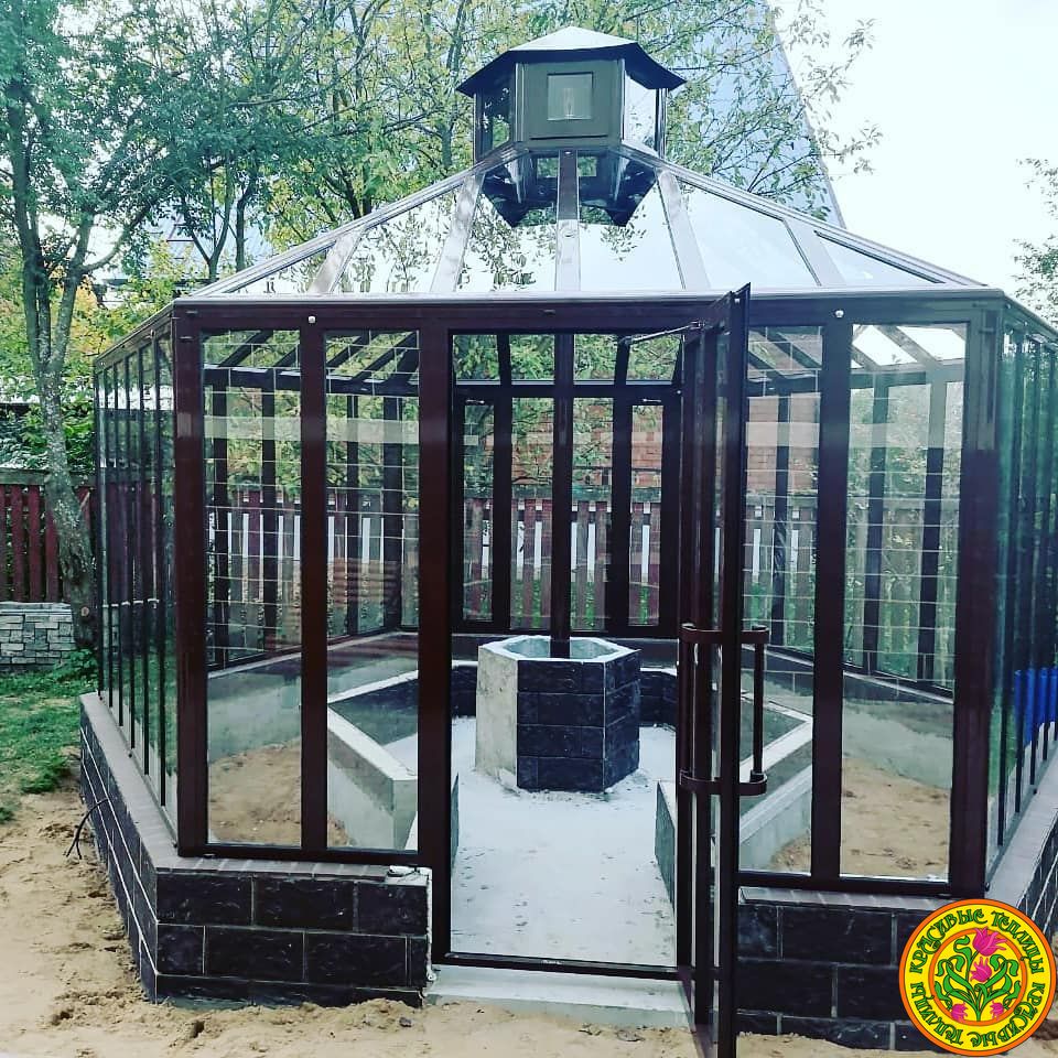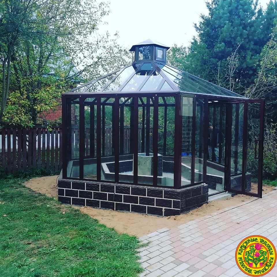 Теплица оранжерея из алюминия и стекла ЛОНДОН имеет шестигранную форму. Безупречная эстетика в лучших английских традициях украсит любую открытую площадку. Конструкцию желательно собирать на капитальном фундаменте. Диаметр конструкции оранжереи 5 м., позволит успешно использовать ее для разведения растений и проведения досуга. Вы можете подобрать дополнительные опции для теплицы.
