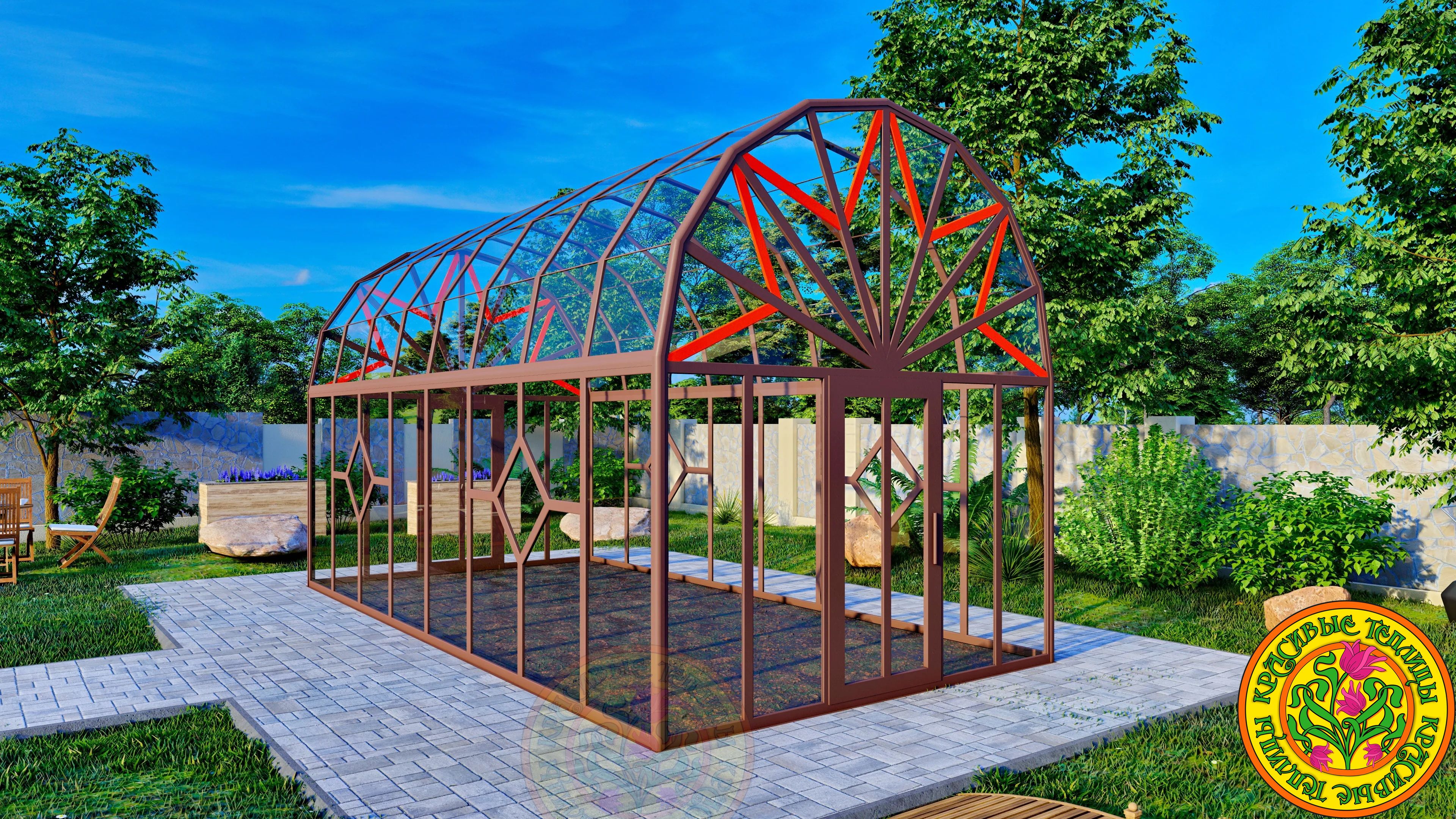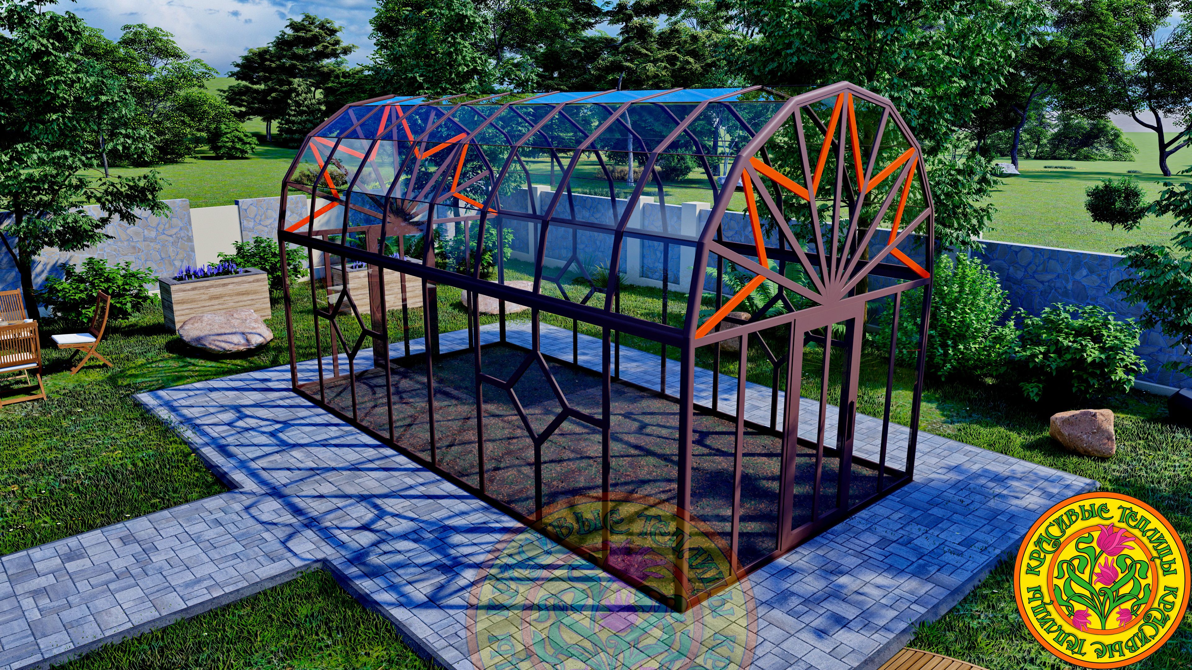 Теплица - Оранжерея из стекла и алюминия с купольной многогранной крышей