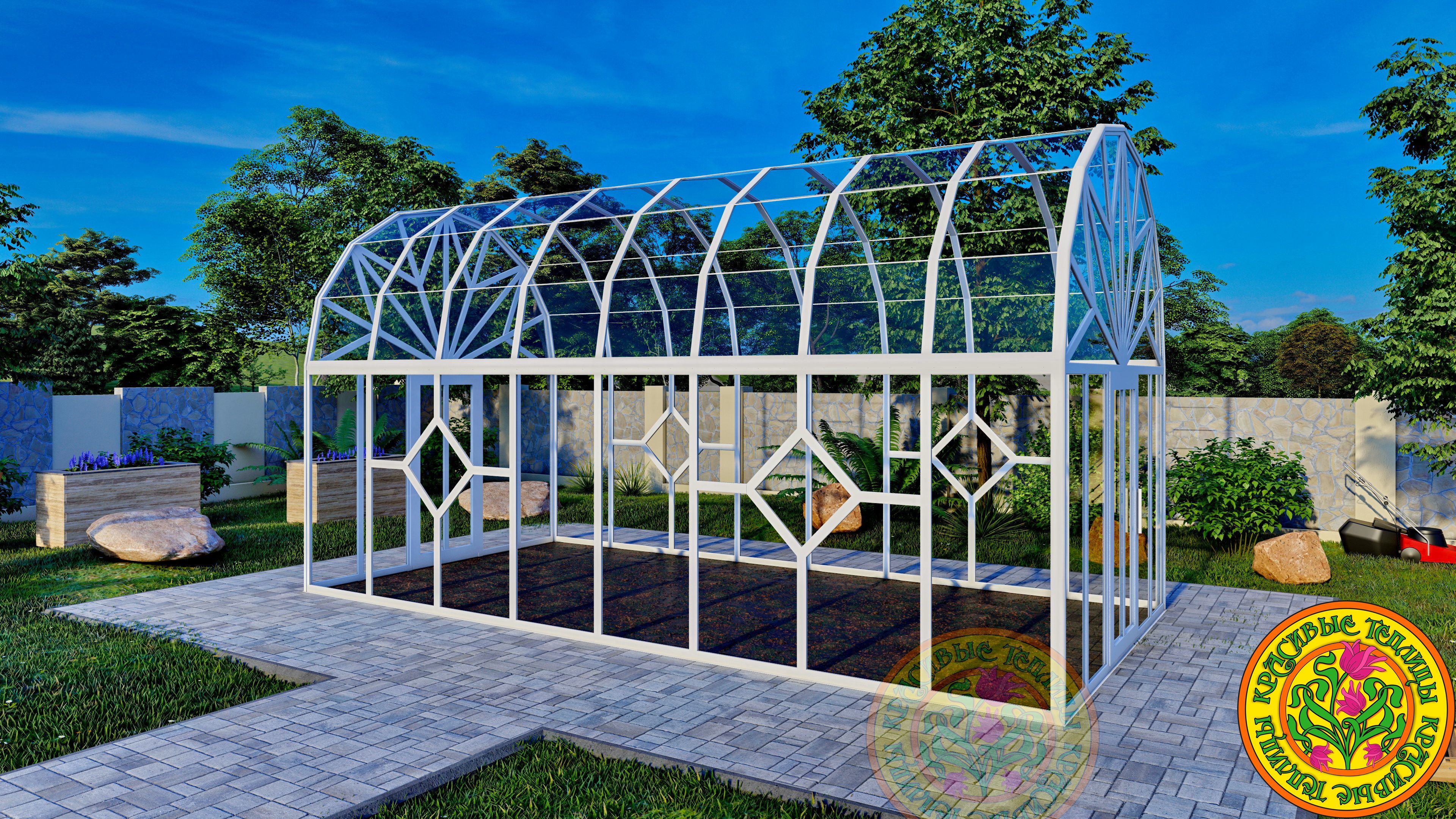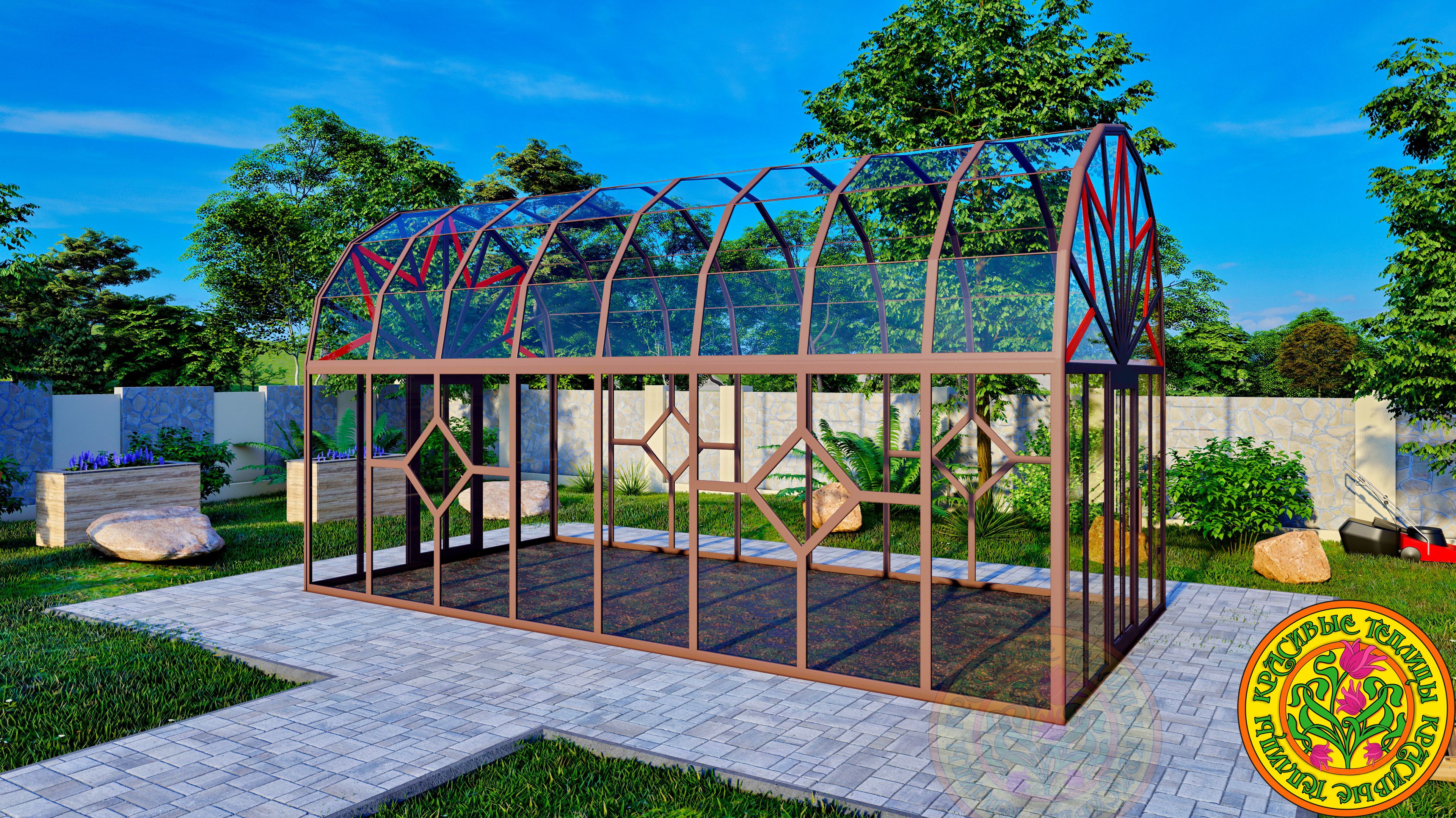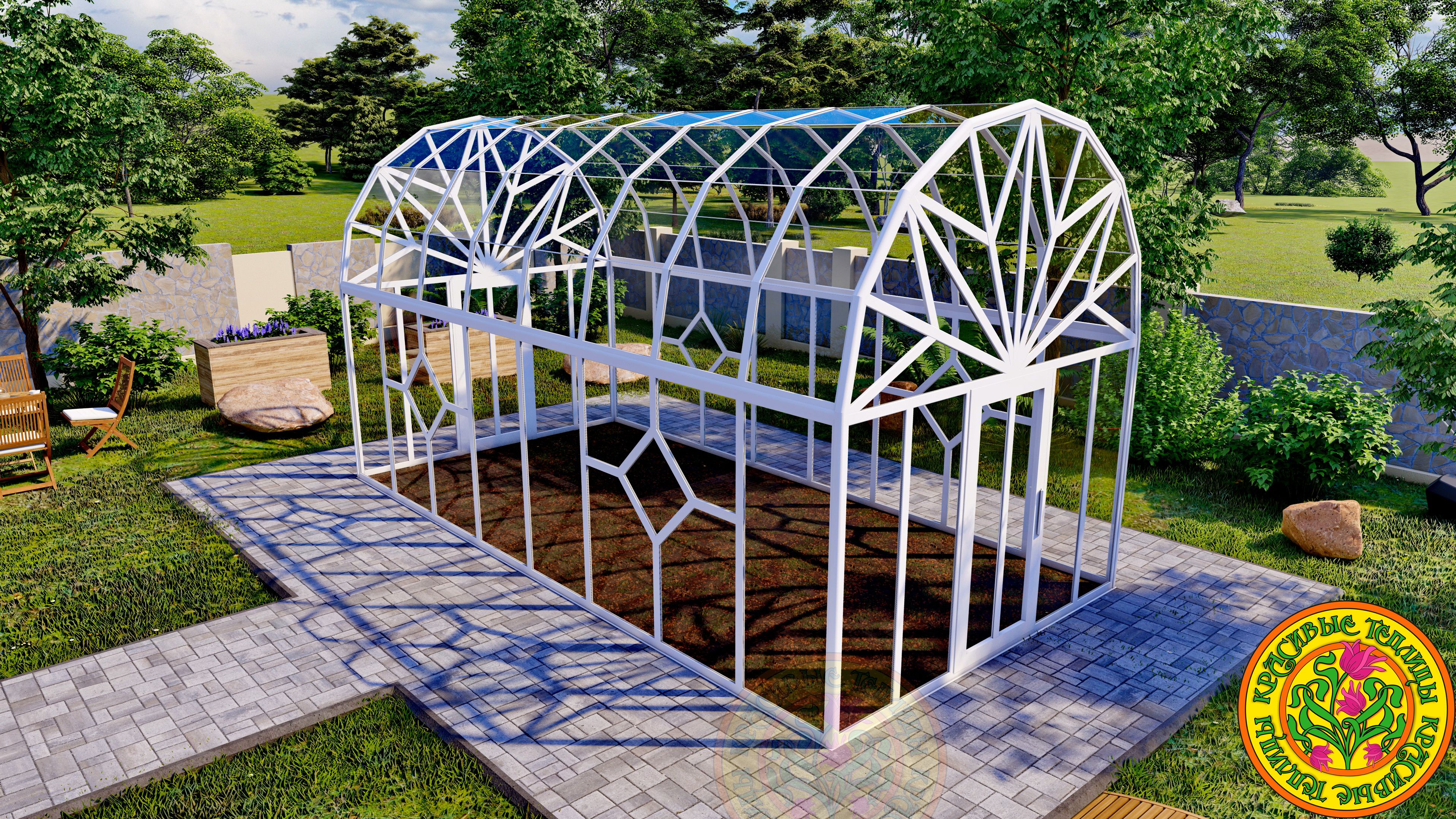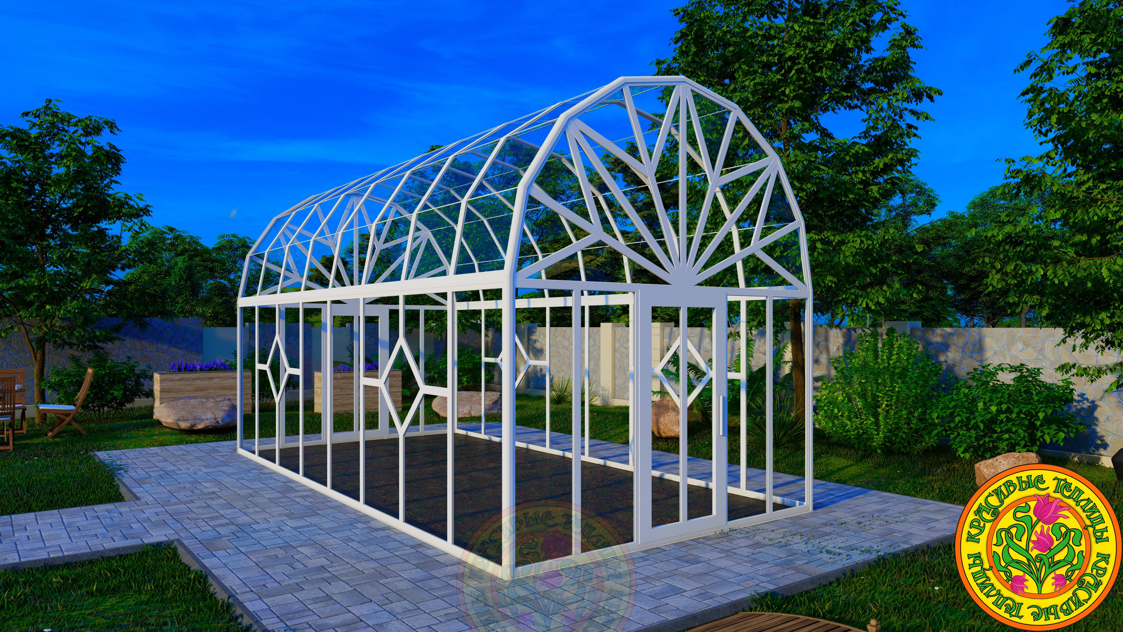 Теплица - Оранжерея из стекла и алюминия с купольной многогранной крышей АСТОРИЯ размером 3500 х 6000 мм