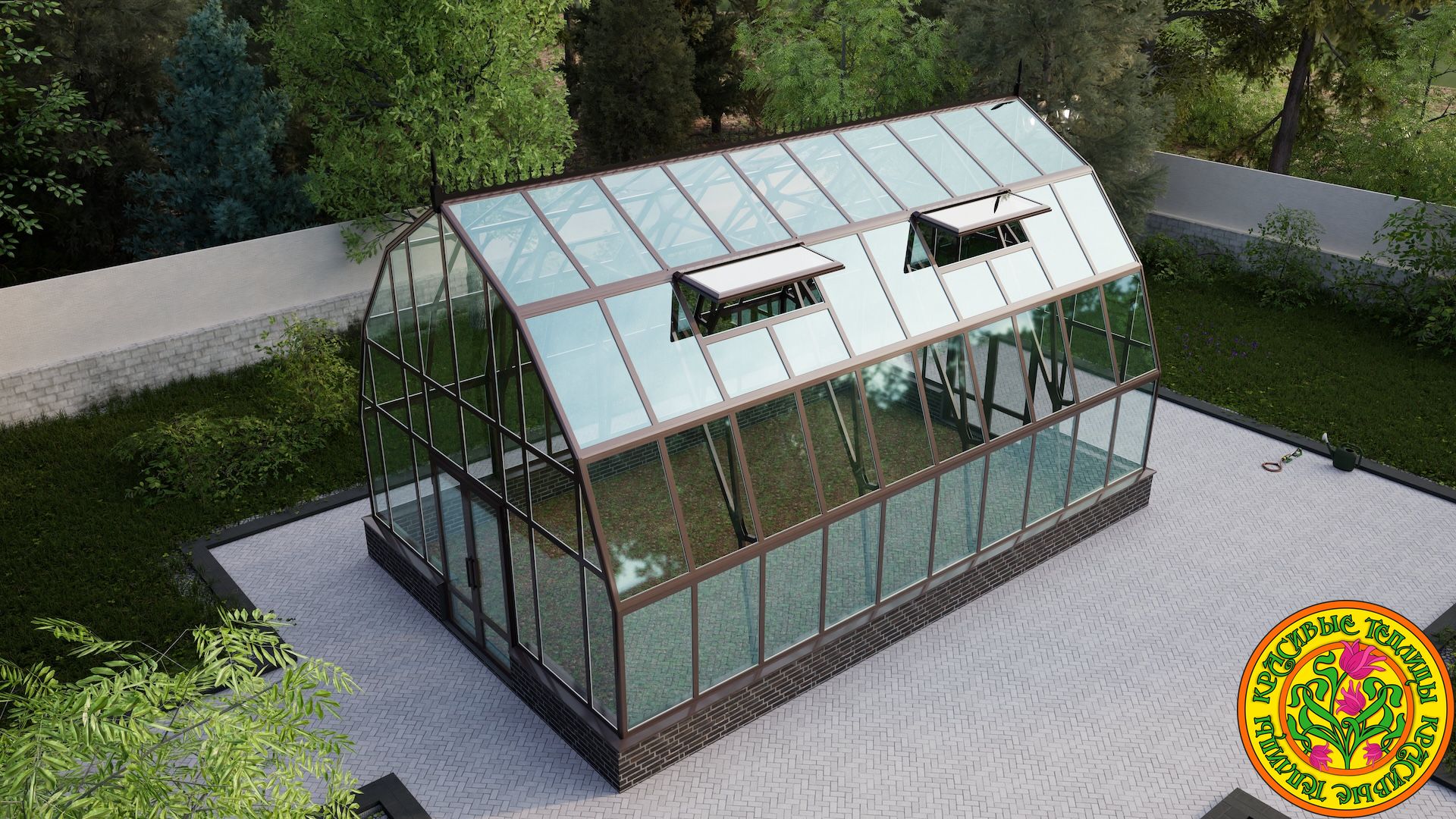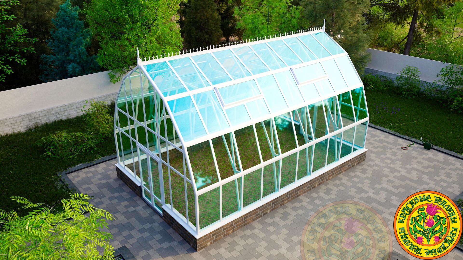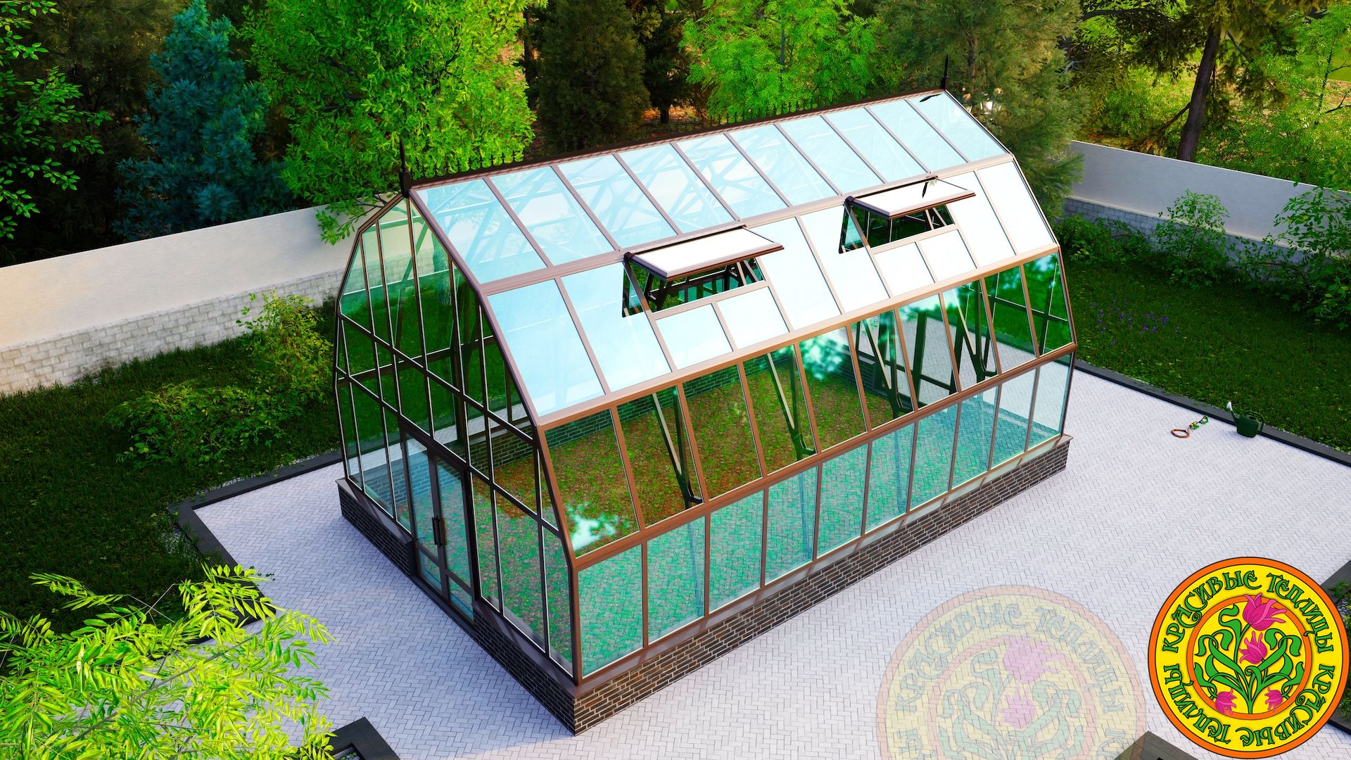 Каркас усилительный из алюминия Резинка уплотнительная по периметру стекла. Стекло 4 мм закаленное. Форточки на скатах кровли для проветривания 4 шт. Автоматические термо-приводы открывания форточек для проветривания - 4 шт. Дверь входная двустворчатая с ручкой 2 шт. Доводчик для двери с фиксацией в открытом положении 4шт.