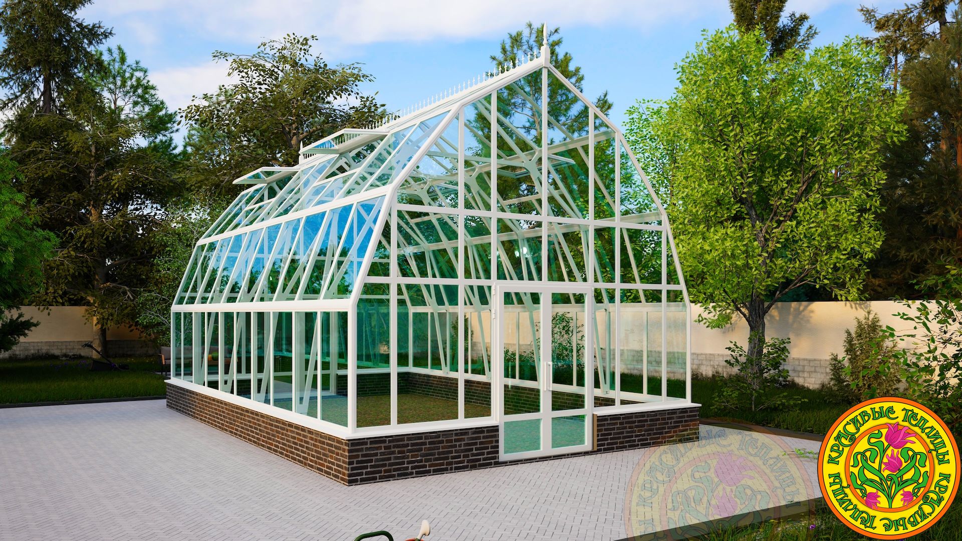 Базовая комплектация теплицы из стекла и алюминия “Леонардо” размером 5000 х 8000 мм