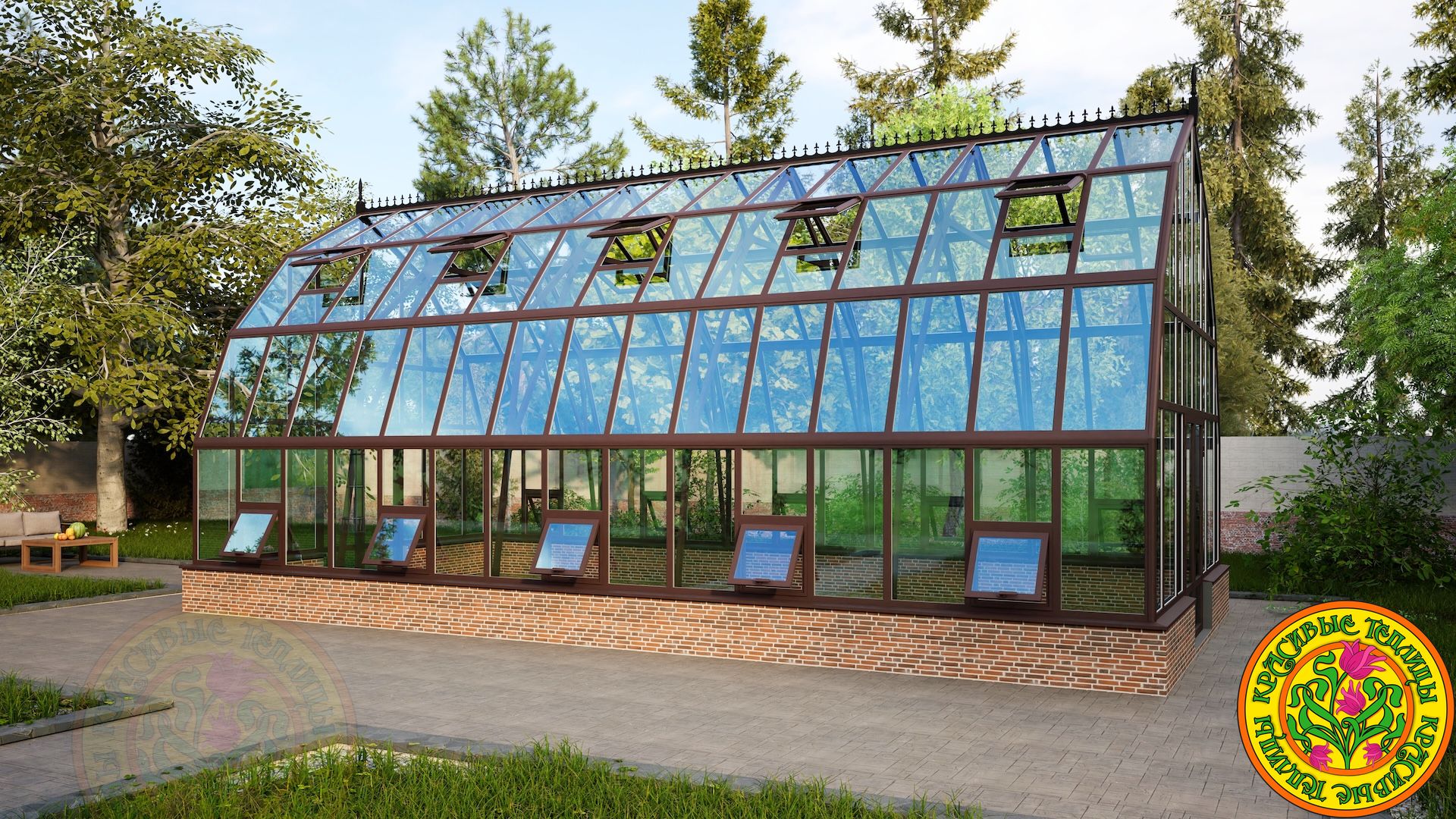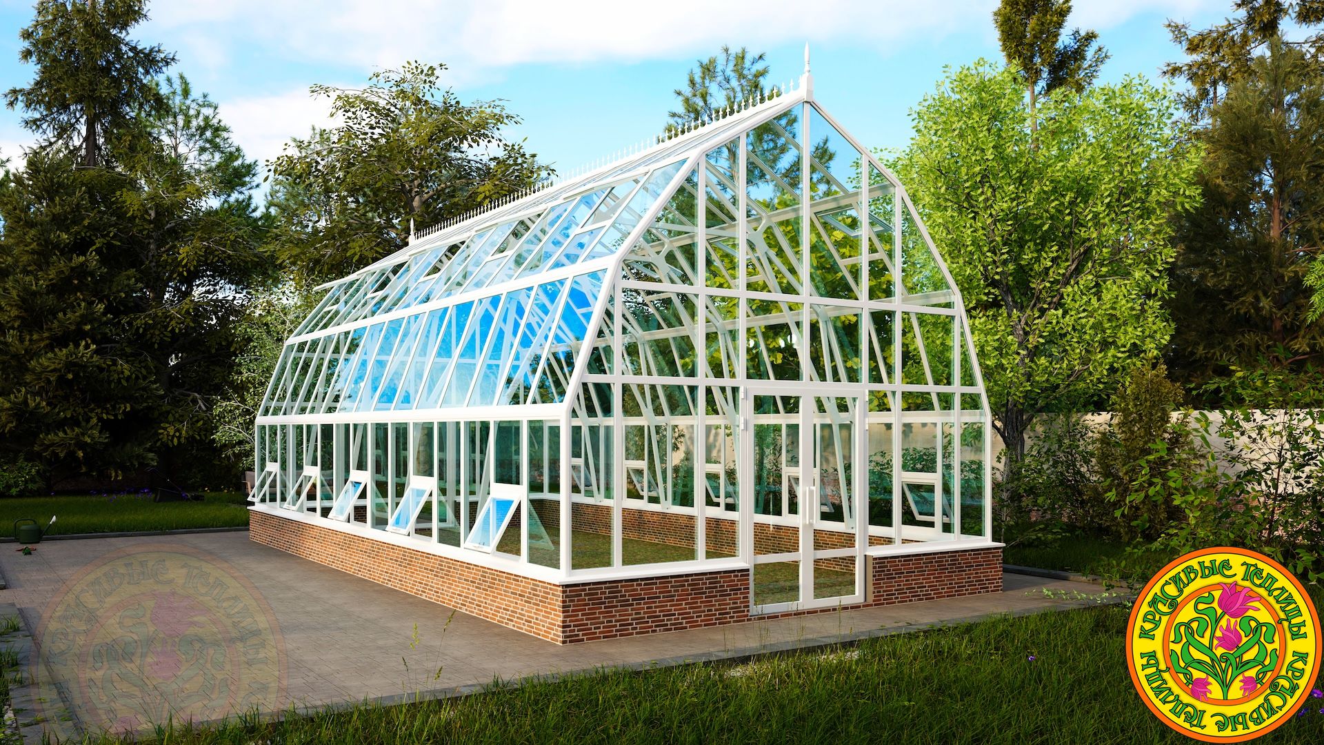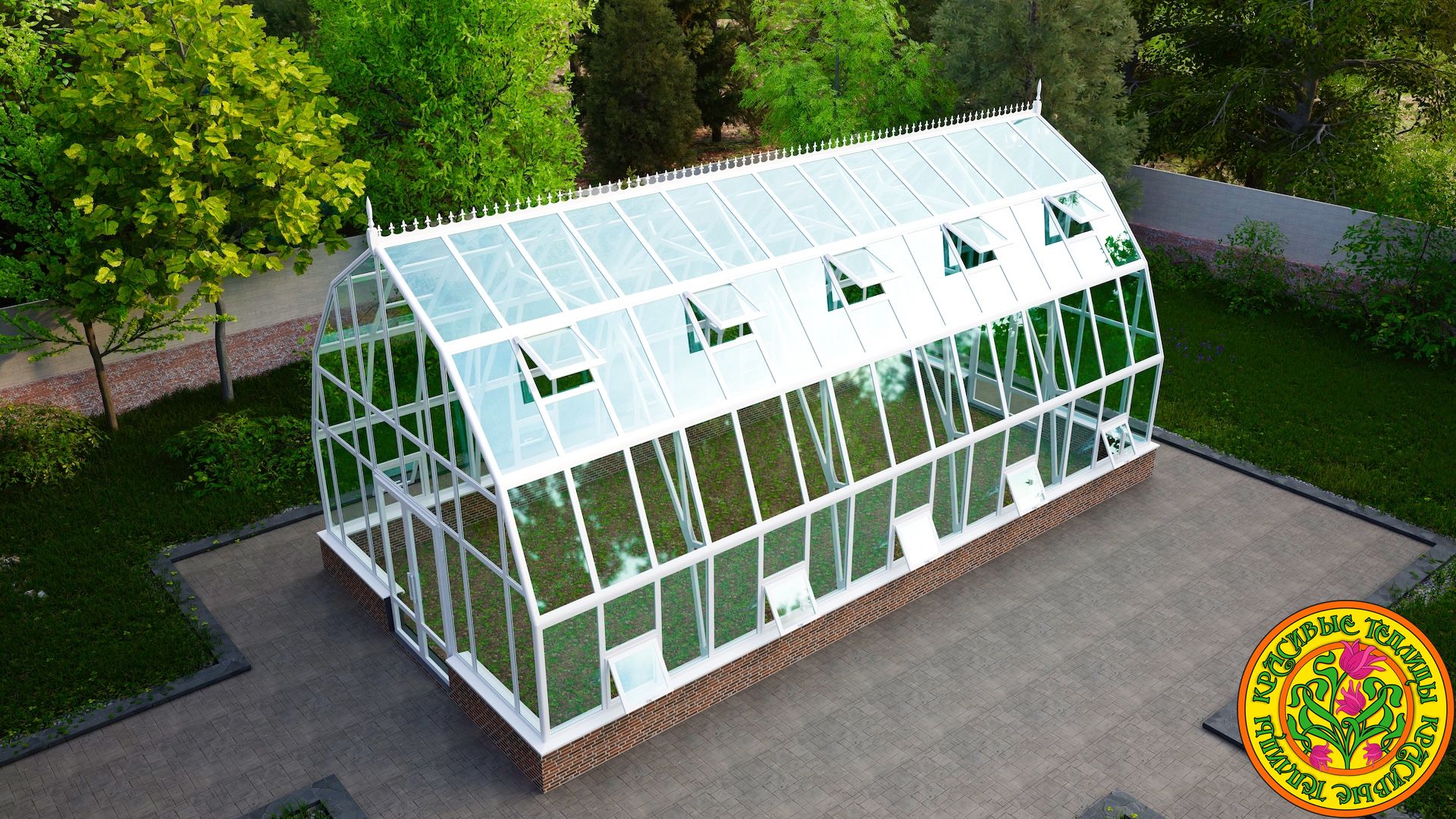 Тип теплицыТеплица домикомБазовый цветбелый или коричневыйЗаполнение вертикальноеСтекло тепличное 4мм.Заполнение скатов кровлиСтекло закаленное 4мм.Площадь пола50 м.кв.Площадь остекления141 м.кв.Открывание двери петлиСправа/слеваТермоприводы для форточек в скатах кровли10 шт.Доставка и монтажестьАлюминиевый каркас из профиляестьОкраска полимернаяестьРезинка уплотнительная по периметру стеклаестьАвтоматические термоприводы открывания форточек для проветривания в вертикальном остеклении10 шт.ПроизводительКрасивые теплицыГарантия 10 летестьЕдиница измеренияшт -