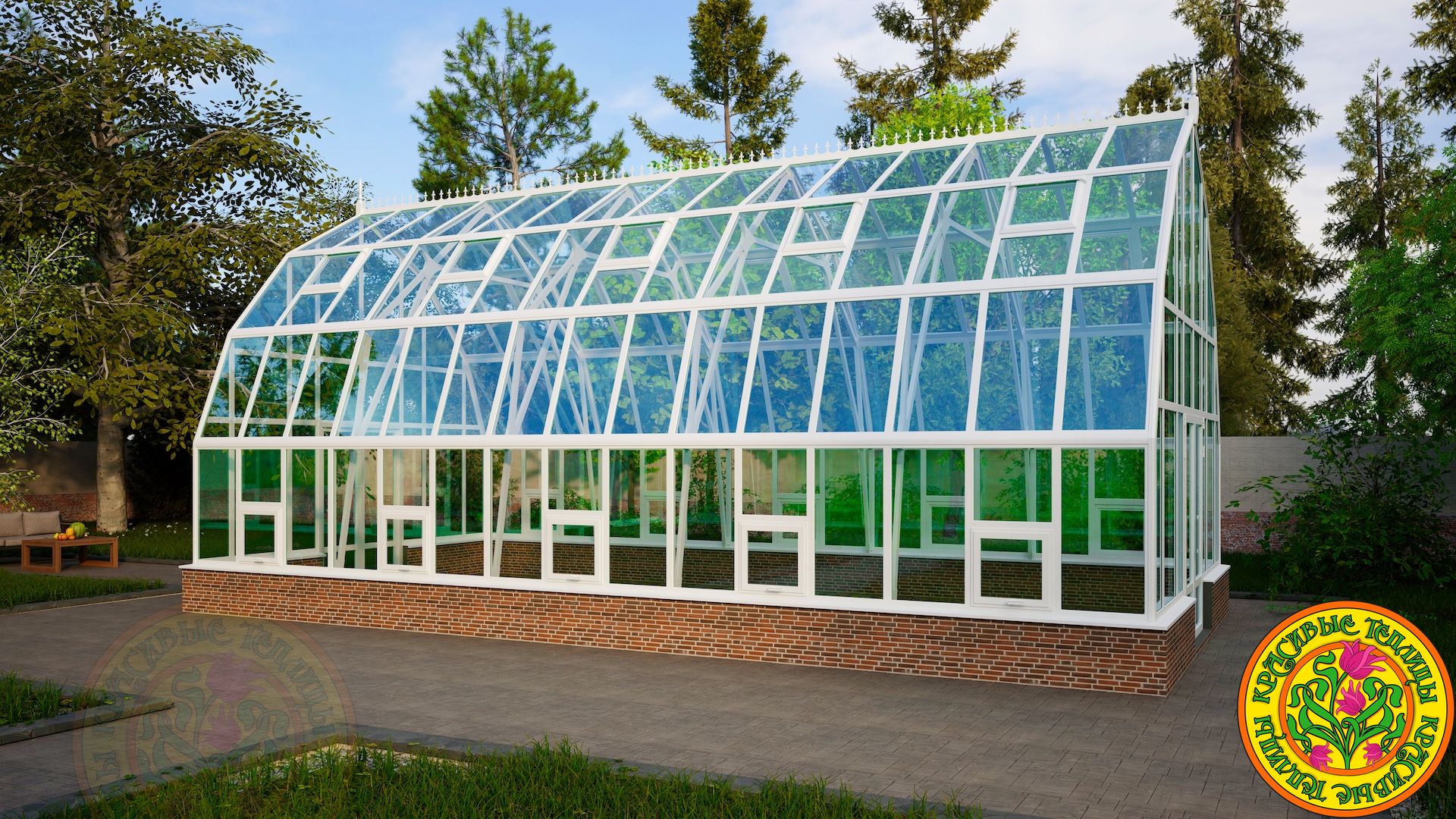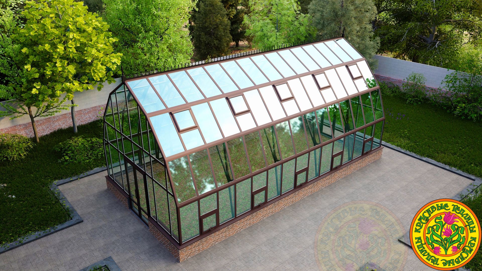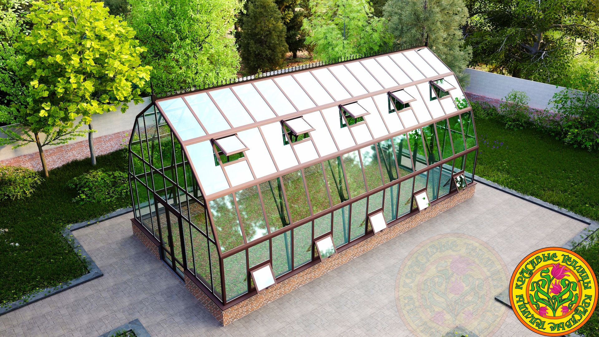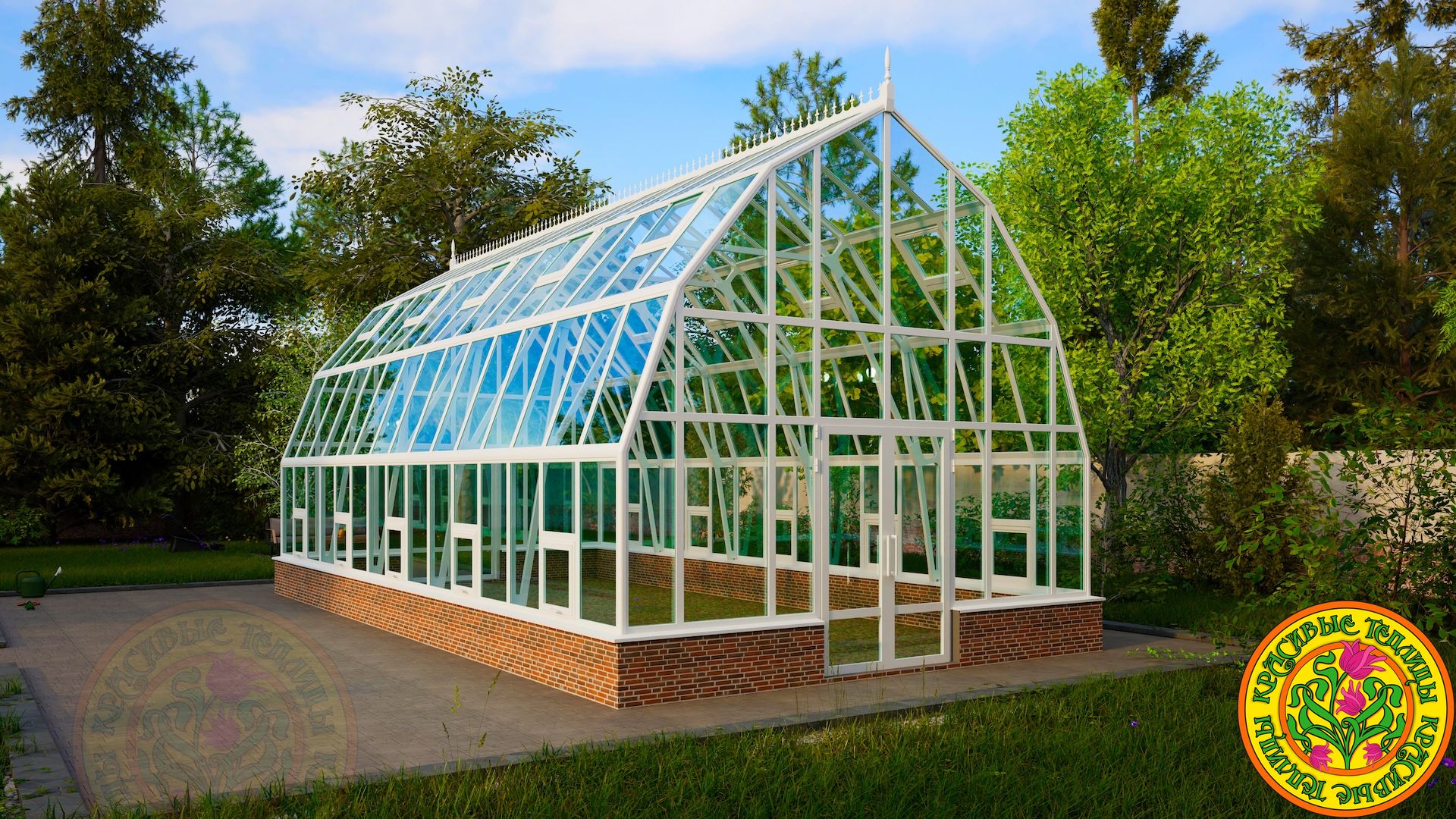 Тип теплицыТеплица домикомБазовый цветбелый или коричневыйЗаполнение вертикальноеСтекло тепличное 4мм.Заполнение скатов кровлиСтекло закаленное 4мм.Площадь пола50 м.кв.Площадь остекления141 м.кв.Открывание двери петлиСправа/слеваТермоприводы для форточек в скатах кровли10 шт.Доставка и монтажестьАлюминиевый каркас из профиляестьОкраска полимернаяестьРезинка уплотнительная по периметру стеклаестьАвтоматические термоприводы открывания форточек для проветривания в вертикальном остеклении10 шт.ПроизводительКрасивые теплицыГарантия 10 летестьЕдиница измеренияшт -