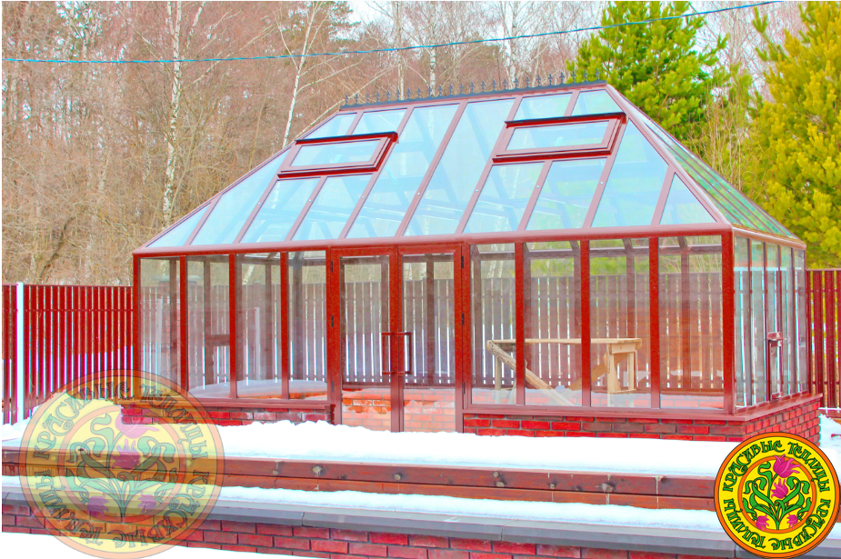 Алюминиевый каркас покрытый порошковой окраской в заводских условиях с использованием тепличного стекла в качестве светопрозрачного материала является практически неуязвимым для воздействий окружающей среды.